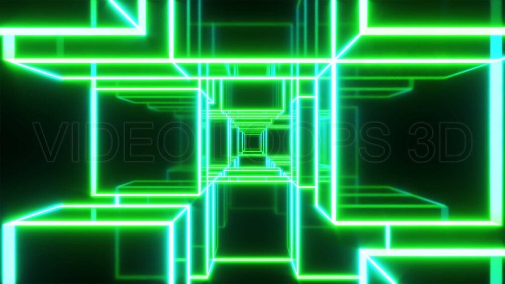 Flying through a tunnel with Cyan & Green Retro Blocks. High Quality. No Watermarks. Perfect for VJs, DJs, Streamers, events, parties, or for multimedia uses like Animated Backgrounds, Live Wallpapers and Screensavers, etc.