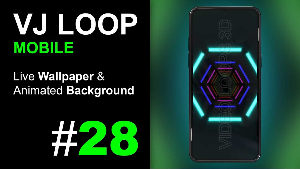 VJ LOOP 28 (Mobile) - Hexagonal Tunnel & Multicolor Neons- Animated Background, Live Wallpaper & Screensaver - 20 sec. - Vertical FHD 1080p - 30 fps