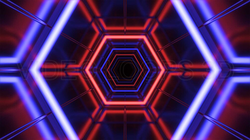VJ LOOP 117 - Metallic Hexagonal Tunnel with Red & Blue Neons - 4 sec. - 4K - 30 fps