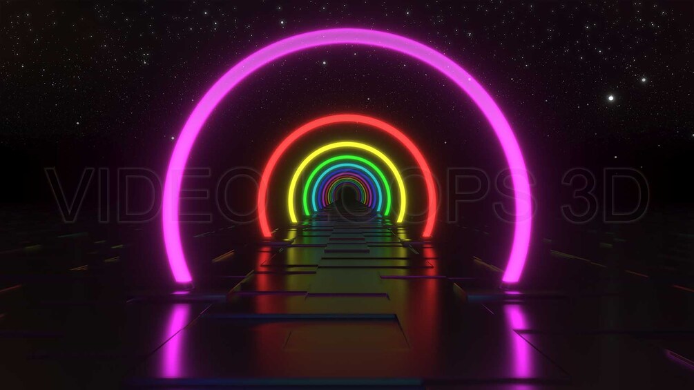 Traveling through a multicolor circular neon gates. High Quality. No Watermarks. Perfect for VJs, DJs, Streamers, events, parties, or for multimedia uses like Animated Backgrounds, Live Wallpapers and Screensavers, etc.